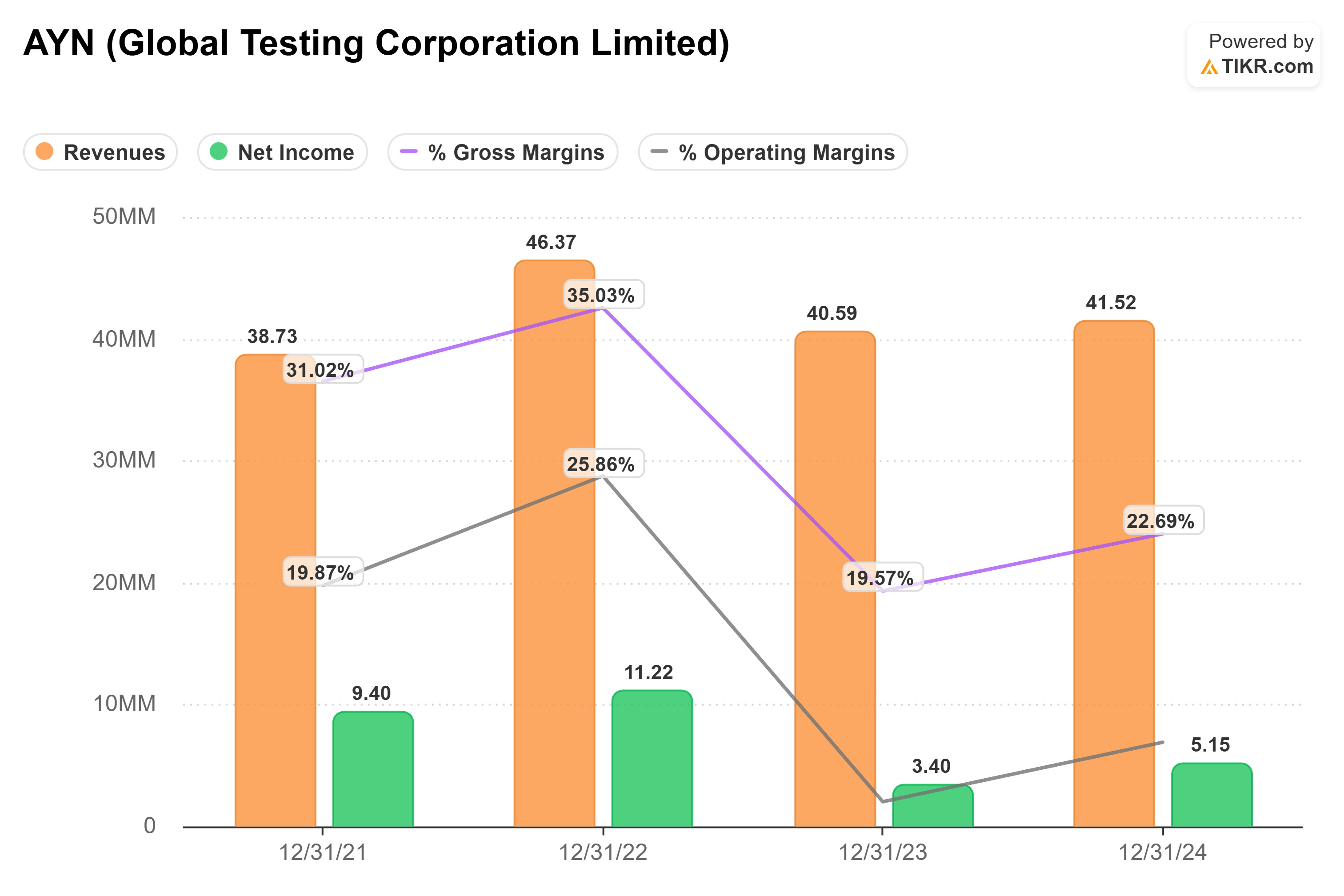 AYN is a Singaporean nanocap that trades at 4.8x earnings, has bought back stock, and has an incredibly strong balance sheet.